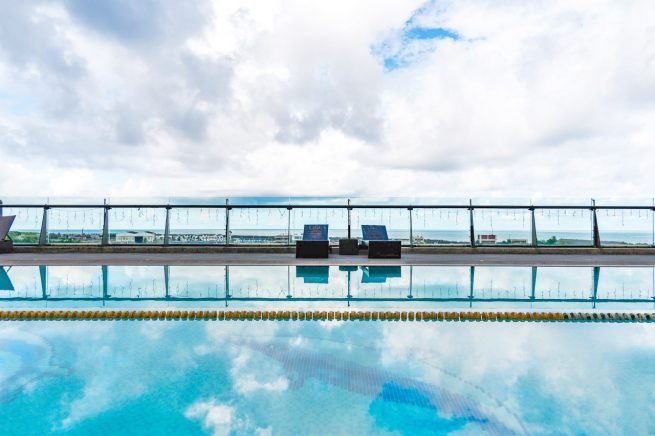 ▲ 戶外泳池、水療池都在飯店 3 樓,從海景房內往下看,除了海景也可以看的到泳池池畔,彷彿有許多可愛的海豚在池裡悠遊