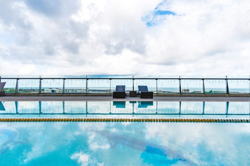▲ 疫情逐漸解封,但飯店防疫還是不馬虎,泳池會有服務人員定時清消,躺椅也都有測量保持一定的距離