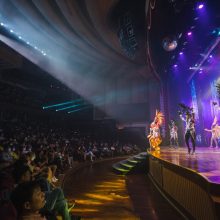 室內空間寬敞有如歌劇院般氣派,階梯式的座位更能無死角的觀看演出,舞台場景還會隨著演出內容而變換,表演途中還穿插與公眾互動的橋段,絕無冷場的歌舞表演讓人目不轉睛!