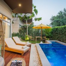 ▲Lagoon Pool Villa 擁有一個私人小庭園,庭園空間寬敞,有桌椅、躺椅,獨享絕佳的放鬆空間