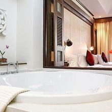 • 客房設備:獨立景觀露台 / 浴缸 / Minibar / 免費瓶裝水 /  咖啡&茶沖泡設備 / 浴袍 / 盥洗備品 / 平面電視 / 辦公桌 / 保險箱 /拖鞋