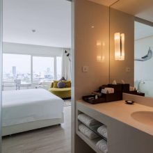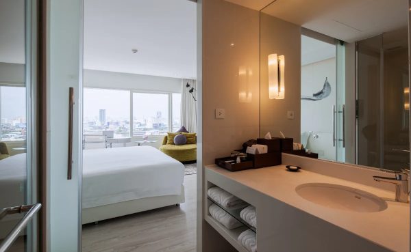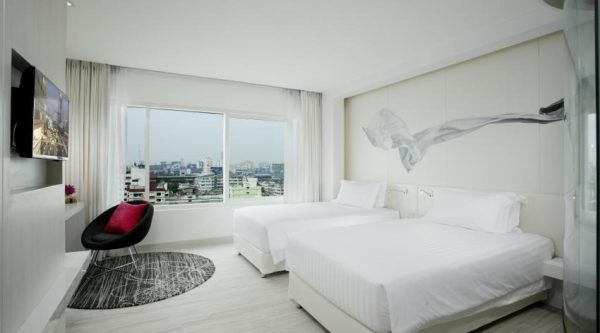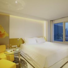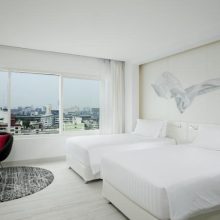Centara Watergate 的房間承襲飯店既有風格,簡約時尚,雪白清爽,搭配鮮豔的傢俱點綴,讓人看著賞心悅目。酒店共有 281 間客房,不管是單身、情侣、朋友或家庭入住都非常適合。