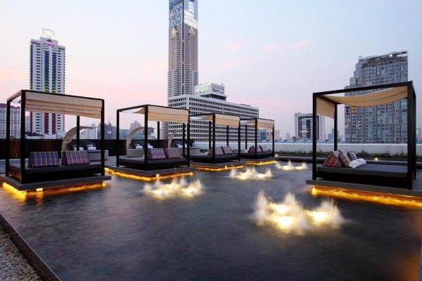 Centara Watergate 最大賣點就是露天景觀池!大廳外有好幾個海島造型的發呆亭,配上泰式傳統三角枕,躺在上面耍廢到底就是這麼療癒!!要注意的是此為露天景觀池不是游泳池,飯店本身沒有泳池配置喔。