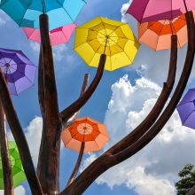 【卡里善之樹】是以製傘工業為主題的展館。2016年紮根於純樸的和美小鎮,進而打造彩虹村落,為社區新增拍照打卡點,活絡社區發展!卡里善命名是源自於這是彰化和美小鎮的古稱,而在這邊他們也規劃了完整的探險區域,能夠按照停車場的地圖漫步在這「探險村落」其中,看看這個社區多了哪些童趣而令人會心一笑的小角落~在來此一遊一定要拍照打卡,讓大家看見這個裝置藝術的風貌。