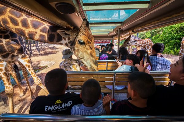 園中齊集各種非洲來的野生生物,因為非洲白天天氣炎熱,野生動物偏好夜晚活動,因此會安排遊客坐上遊園車,近距離觀察獅子、老虎、熊,野狼等動物,是相當刺激的特殊經驗!