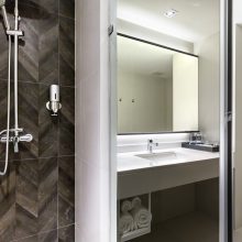 標準房以木質地板取代傳統飯店愛用的地毯,客房備品馬克杯、熱水壺、茶包咖啡包、礦泉水皆有提供,若肚子餓又懶得出門,飯店有提供 Room Service。除此之外,客房電視讓人驚艷,高清大螢幕的智慧型電視,除了基本電視頻道,還能支援藍芽讓手機畫面投放到電視螢幕上,想追劇、看 Youtube、玩手遊,就用放大 20 倍的大螢幕觀看,開啟爽爽的渡假模式。