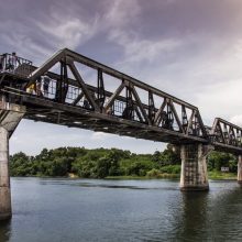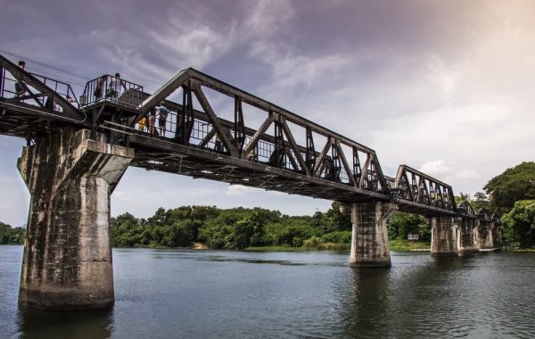二次世界大戰期間(1943 年),日軍強逼大批華僑及盟軍戰俘修建從泰國通往緬甸的鐵路,以利運送作戰物資。由於地勢險惡,修建期間數萬名戰俘因而犧牲,後人便將這條鐵路稱為「死亡鐵路」,而其中橫跨桂河的這一段,就是有名的「桂河大橋」。1957 年,好來塢將這段歷史拍成電影《桂河大橋》,不但一舉榮獲最佳影片等七項大獎,成為經典名片,桂河大橋也因此成為全球知名的觀光景點。