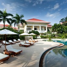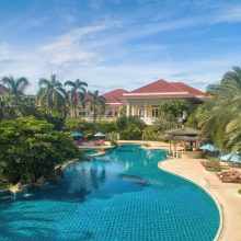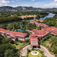 Dheva Mantra Resort 是北碧府相當知名的五星級渡假村,外觀採用殖民地建築風格設計,典雅氣派的樓房被大量熱帶植栽環繞包圍,非常有歐洲貴族的假期氛圍。飯店地點就位在桂河河畔旁,距離最受旅客歡迎的桂河大橋、戰爭博物館等知名景點大約 10 分鐘的車程,行程安排非常便利!