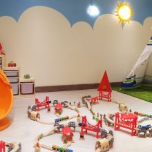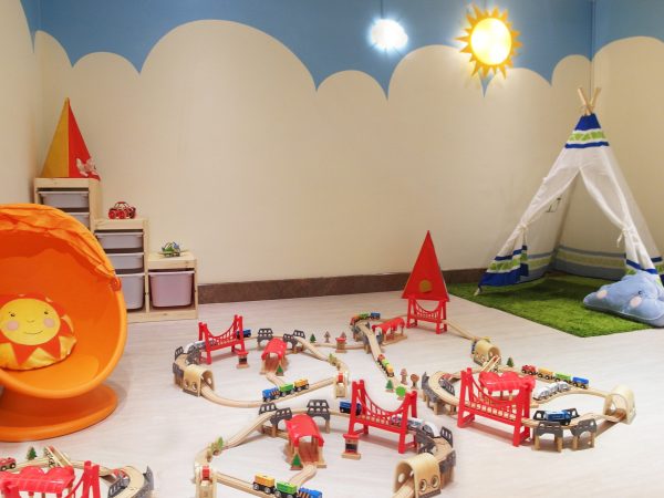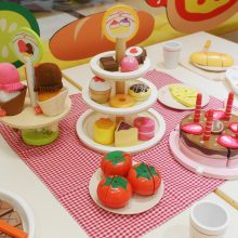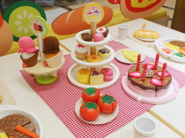 ▲除了室外遊戲區,室內的遊樂場「歡樂小天地」也身受許多小孩喜愛,提供木製兒童餐具組,讓小小孩的一圓開店的夢想!