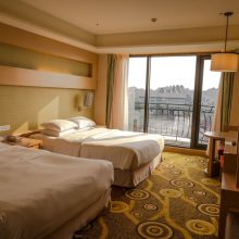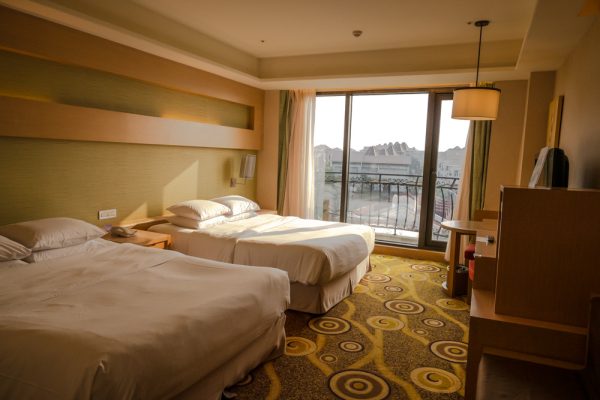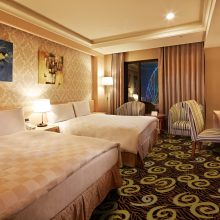天悅的房間擺設我覺得和皇家的差不多,都是以大地暖色系的花紋地毯為主,房間大小也沒有差很多,每個房間都附有一個小陽台,有些陽台可以看到對面的購物中心和摩天輪。