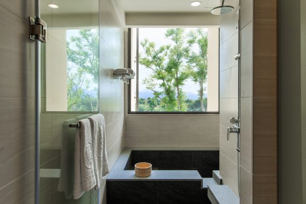 寬闊空間及舒適沙發區讓人沉溺在悠閒氛圍中,大片落地窗陽光流洩,凝聚幸福時光~房內專屬泡湯浴池,自在享受與親友共度靜謐時光,留下深刻難忘的旅行回憶。