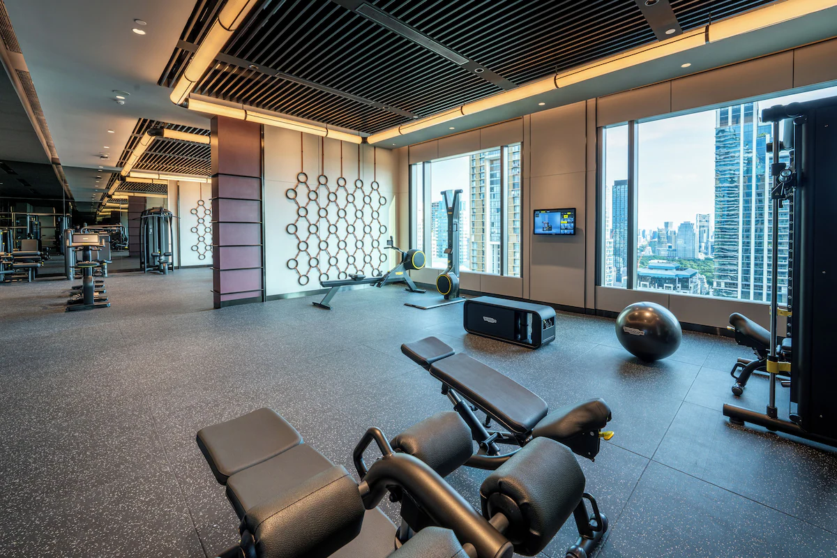 飯店的健身房名為 Gravity Fit Club,設置在大樓的中高層,設備專業且齊全。配有國際知名的訓練器材(TechnoGym),包括跑步機、重量訓練器材等,非常適合商務旅客或健身愛好者。