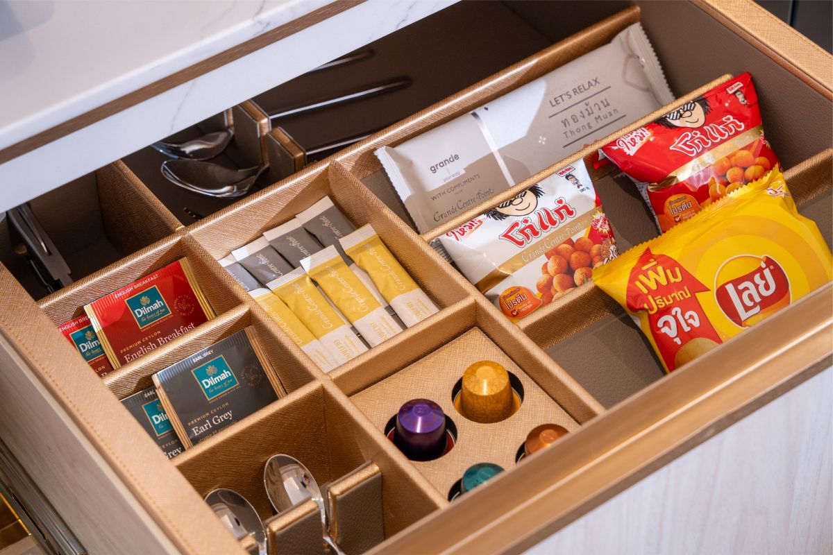- 客房設備:沙發 / 茶几 / 液晶電視 / 辦公桌 / 浴袍 / 拖鞋 / 盥洗用品 / 乾濕分離淋浴間 / 浴缸 / 保險箱 / Dyson 吹風機 / Nespresso 咖啡機 / 免費 Wi-Fi / 免費零食吧