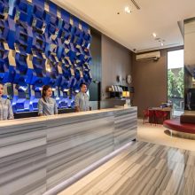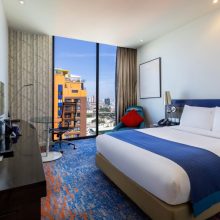 飯店設計現代簡約、融合泰式元素,整體氛圍舒適愜意。館內設施包含自助洗衣、餐廳、健身中心,還有頂樓熱帶花園可眺望曼谷天際線及國家體育館,兼具實惠價格、便利位置與舒適空間,是曼谷 CP 值高的住宿選擇!