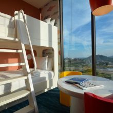 Premium Family Room 為無隔間的親子套房,小朋友在旁邊玩樂也能隨時注意狀況;房內色調與佈置溫馨中帶點活潑,不論休息或玩遊戲都能感到非常舒適,是帶小朋友出遊的熱門住宿選擇。