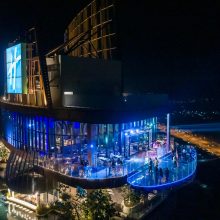 ▲走出從酒吧向外延伸的是玻璃天空看台,除了欣賞令人振奮的海景,還可以俯瞰水上樂園