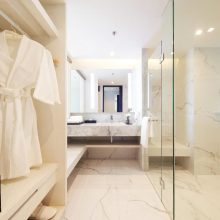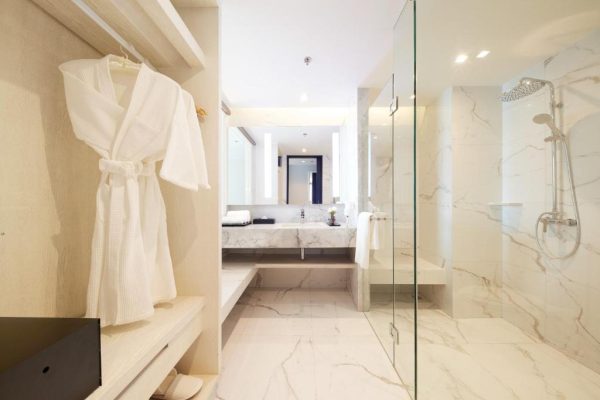 Cross Vibe 除了地理位置優越,裝潢風格在社群上的風評也不錯,基本房 28 平方米的空間比不少四星級飯店還要寬敞許多,飯店還擁有游泳池、SPA 館,甚至溫泉池,各項設施可說是一應俱全,絕對是小資遊客的好選擇!