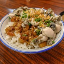 你愛吃滷肉飯又剛好喜歡蚵仔嗎?黑點師聽到了~浮誇系蚵仔滷肉飯底家啦!小編在吃之前,覺得這兩樣食物結合在一起滿怪的,可是到黑點師吃了一口蚵仔滷肉飯後,簡直好吃到想站起來尖叫!!(請自行腦補小當家好吃閃亮亮的配樂)