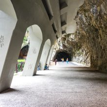 位於太魯閣天祥的「白楊步道」平緩好走,景色壯闊優美,步道尾端還有一個神祕的水濂洞,是一個適合老少咸宜的熱門步道。整段步道長 2.1Km,總共有 7個隧道,往返約 2 小時,沿途可觀賞大理岩、片岩、峽谷、瀑布、溪流等峽谷景觀。