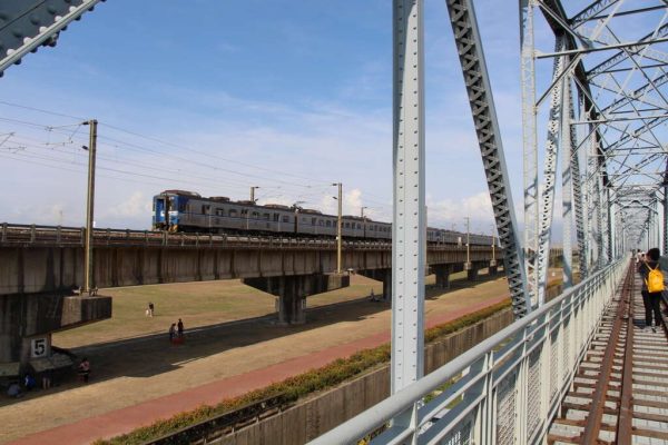 鐵道迷看過來,一起到高雄大樹區的【舊鐵橋天空步道】拍火車去!漫步在天空步道中,偶爾運氣好能看到台鐵火車經過。白天天氣好時有藍天白雲陪襯,傍晚時分來時會看到落日西下的夕陽美景,走上天空步道可以近距離欣賞古蹟與鐵橋裡白色鋼架整齊劃一的美,也能將高屏溪翠綠的溼地與潺潺的河流美景盡收眼底。