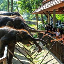 園區有許多動物表演,像「大象在水中游泳」的表演就深受遊客喜愛,大象不虧是泰國的動物明星呢!