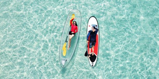 ▲水上樂園(含滑水道、彈簧床、浮板、獨木舟、SUP 立槳)是親子同樂的最棒遊樂場