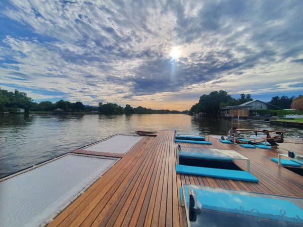 度假村共有 26 間走泰式風格的 Villa,各自獨立而又優雅地漂浮在如詩畫般美麗的桂河上。每間房間都以木頭及竹子搭建而成,並使用最高級的柚木為家具,讓整體環境不只舒適有質感,還能自然的融入周圍環境當中。室內空間挑高寬敞,該有的現代化設備皆俱全 (提供免費 Wi-Fi),設有私人陽台及日光浴平台,可直接穿著救生衣從平台跳下桂河漂流,恣意地享受最天然的大型泳池。除了有豐富的生態景觀、綠林河景可看以外,度假村內還設有水上餐廳,並提供有竹筏遊河、划獨木舟、釣魚、騎自行車等相當多元的戶外活動。