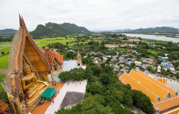 虎穴廟 (Wat Tham Sua) 是北碧府最大的寺廟,從遠處就可以看到廟內一尊高約 18 公尺、寬約 10 公尺的金色大佛,加上壯麗的建築及寬闊的鄉村田野景致,讓此處成為北碧府境內最出名及最受歡迎的廟宇。