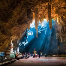 拷龍洞是一個大型的地底鐘乳石洞穴,除了擁有百年歷史,因保存著拉瑪五世獻給拉瑪三世及四世的親筆提文,也極具歷史意義及價值。在這裡除了要欣賞天然形成的奇岩怪石外,內部大大小小不同型態的佛像也很值得一看;天氣好的話,從頭頂洞穴口佈撒而下的光束,更讓此處添幾分神秘及神聖氣息。來到這裡,不妨試試站在洞口下拍照,猶如沐浴在靈氣及聖光中喔!