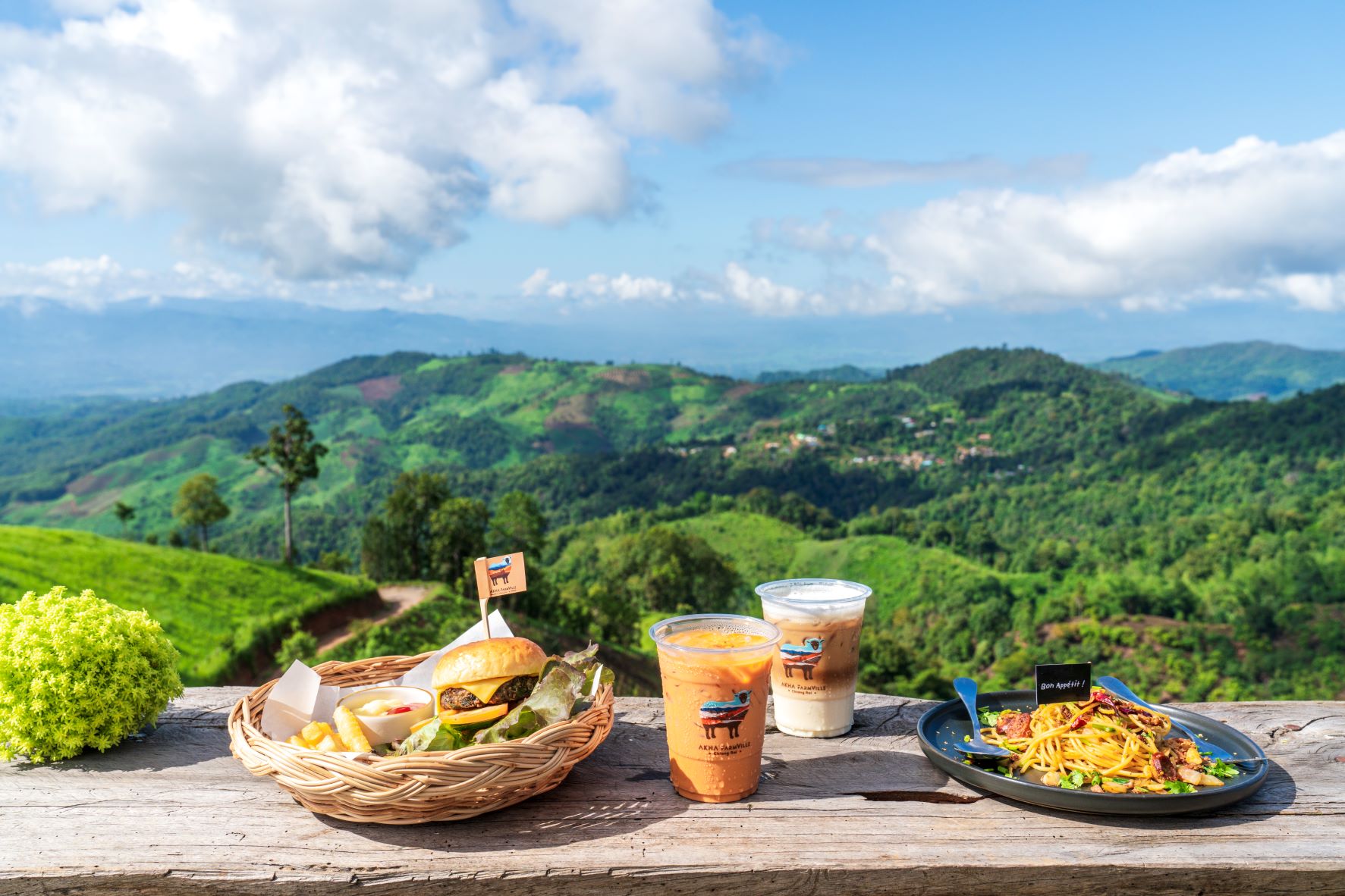 Akha FarmVille 位於泰國清萊山區,是近年相當受歡迎的高山景觀農場與咖啡園。農場由泰國少數民族阿卡族(Akha)經營,結合了山景木屋、綿羊農場與悠閒咖啡廳,整體氛圍清新又充滿自然氣息。放眼望去是遼闊的翠綠草地,搭配藍天白雲與連綿山巒,還有一群親人又可愛的綿羊悠閒活動,光是靜靜看著,就讓人感到放鬆又舒服。