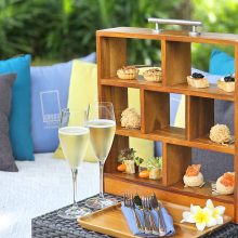 時尚五星級飯店 Cross Pattaya Pratamnak 所推出的這套“Pratamnak Bubble Set”,將下午茶換成法國氣泡酒組合,搭配魚子醬奶油圓餅、煙燻鮭魚、雞肉捲、酥炸嫩蝦以及菠菜起司塔等鹹食點心。酸度適中、口感清爽的氣泡酒配上各種鹹鮮小點,就是讓下午茶升級的絕妙搭配。在這微醺的浪漫午後,置身在歐洲殖民式風格飯店中享用下午茶,還能在純白泳池旁拍出雜誌感十足的美照,真的別有一番風味!