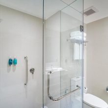 ▲浴室空間一樣選用藍白色調,且為乾濕分離