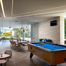 BIG CHILL 是一個可以結合娛樂功能的休憩空間,大面的玻璃窗使空間採光良好,還可以順道欣賞戶外景緻。你可以在這與朋友聊天、喝點東西,也可以打撞球、玩桌遊,或在使用電腦處理各項事務。