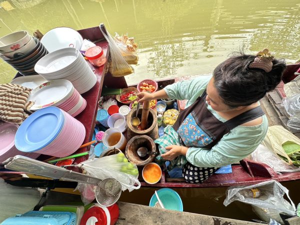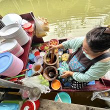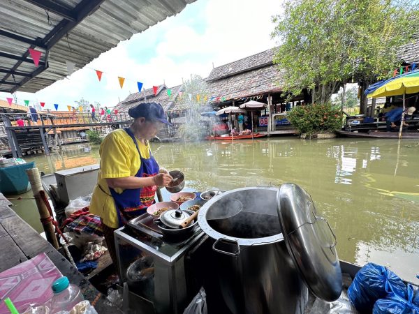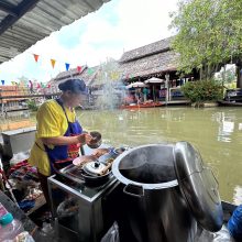 ▲泰國水上市場最大的特色,就是會在水道兩旁看到商家直接在船上料理,來一道美味可口的泰式料理,好好享受這獨特的泰式風情吧!