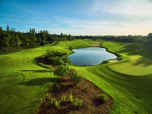 球場坐落在歷史悠久的湄南河三角洲的山谷深處中,景觀是由森林覆蓋的山丘和荒地環繞高爾夫球場,再結合數個經過疏浚的大湖泊構成,大部分球洞的球道從高架發球台一直延伸到下方谷地中,多片濕地景觀和原生草叢也成為許多野生動物的天然樂園。