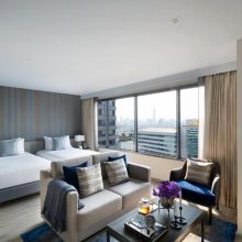 • 客房設備:雙人沙發/餐桌/小廚房(微波爐、電磁爐、玻璃器皿、陶瓷餐具、刀叉餐具及炊具、電水壺、冰箱、烤麵包機、洗烘衣機)/CD / DVD 播放器(可與飯店需求)/咖啡桌/43 吋液晶電視/辦公桌/迷你冰箱/浴袍/拖鞋/毛巾/羽绒被&羽绒枕/電話(可撥打長途電話)/電子保險箱/吹風機/蒸氣熨斗及熨衣板/免費 Wi-Fi