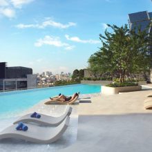 ▲位於八樓的無邊際泳池,靜靜地躺著曬太陽、欣賞城市風景,讓身心都得到放鬆