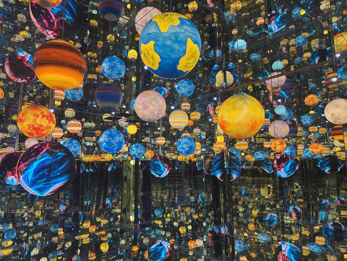 全館主要規劃為三大互動展區,共計 27 間各具特色的主題空間。每個獨立空間各有不同的亮點,包含粒子紗簾、夢的螺旋樓梯、鏡面迷宮、流浪星球、賽博龐克城市、金色瀑布⋯等場景設計,讓人一邊探索、一邊拍照,彷彿在不同時空中穿梭,是曼谷近期最熱門的展覽之一。