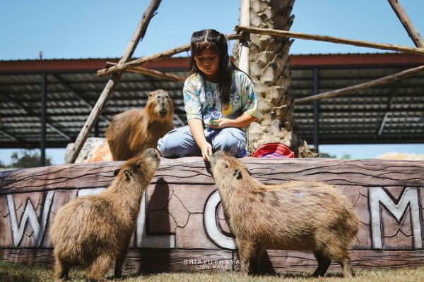 ▲可讓大小朋友們一起親近的水豚,溫馴以及沒有脾氣的個性,讓人一下子就融化!(購買曼谷幫套票含一份水豚食物籃,可與水豚一起拍照)