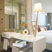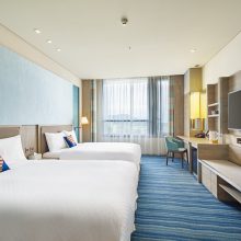 【客房設備】插卡式中央空調、Mimare 沐浴盥洗備品、免費 Wi-Fi 無線網路、50 吋電視、Panasonic 吹風機、免費 mini bar、乾濕分離衛浴、環保靜音冰箱、免費品牌礦泉水、免治馬桶