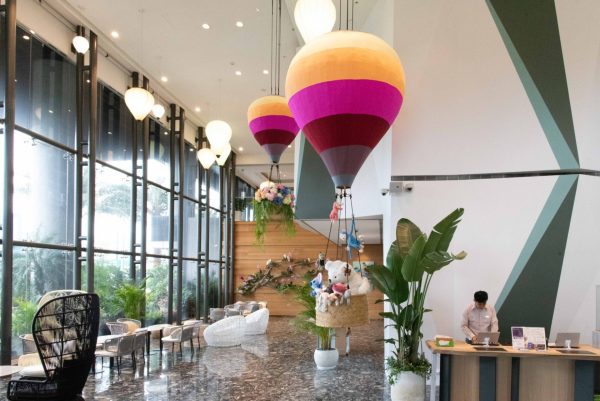 ▲大廳設計充滿熱氣球,搭配活潑繽紛的色彩,彷彿像熱氣球嘉年華般歡樂。