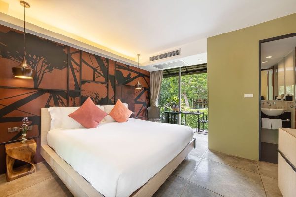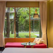 Superior Balcony Garden View 為飯店的基本房,採現代風格的舒適設計,落地窗外即可欣賞美麗的庭園綠地景觀。