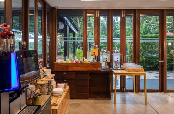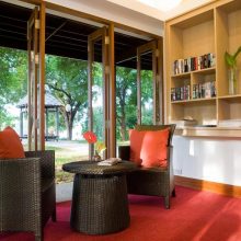 飯店附設小型的圖書室,無需預約且 24 小時開放,隨時都可以進來讀本書或是休息一下,享受在綠蔭包圍下的靜謐空間。若不想待在室內,館外還有涼亭可以待著,很適合在這邊悠閒地度過一個下午~