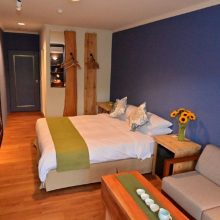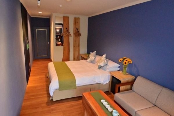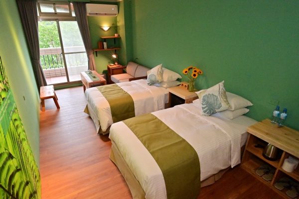 客房以海洋天空藍、森林草綠、溫暖大地三個色系,搭配原木家飾,遠離城市喧囂,感受住在森林裡的靜謐與美好,走進里山為您打造的靜心之旅。
