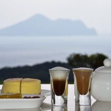 無論晴天、雨天遠眺龜山島,手上多了杯咖啡及精選手工甜點,增添眼前美景的詩意。