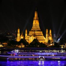 乘船夜遊昭披耶河是體驗曼谷迷人夜生活的另一種方式。乘上 White Orchid 白蘭花號郵輪,從 Asiatique 碼頭夜市或 ICONSIAM 碼頭出發,一路行至鄭王廟,沿途將行經曼谷幾處重要景點,如 ICONSIAM、拉瑪一世大橋、鄭王廟、三寶公寺、聖克魯斯教堂、大皇宮、拉瑪八世橋等等。
