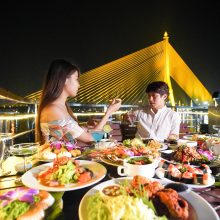 在微風輕拂中,聽著音樂、暢快享用美食美酒,看著沿岸來來往往的船隻,欣賞與白天有著截然不同美感的昭披耶河,盡情享受這樣浪漫又放鬆的夜晚。